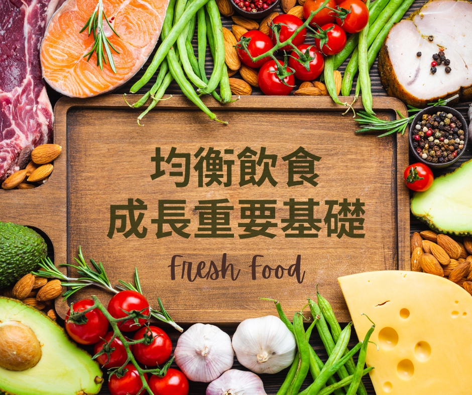 均衡飲食是健康成長基礎,攝取足夠醣類、蛋白質與脂肪,人體才有原料讓身體的器官、組織正常運作,各種食物都均衡攝取,維生素與礦物質足夠,更能促進健康生長。
