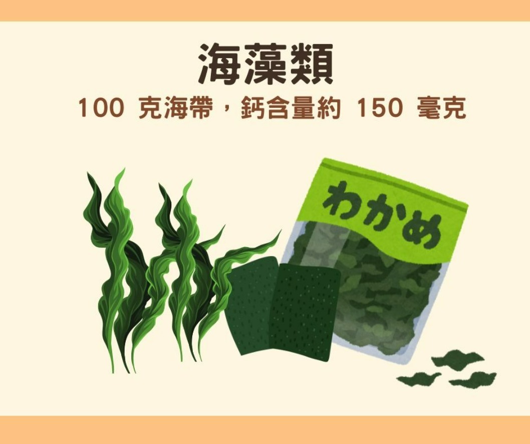 每 100 克海帶含鈣約 150 毫克,同時提供鎂與碘,適合搭配湯品或涼拌食用。