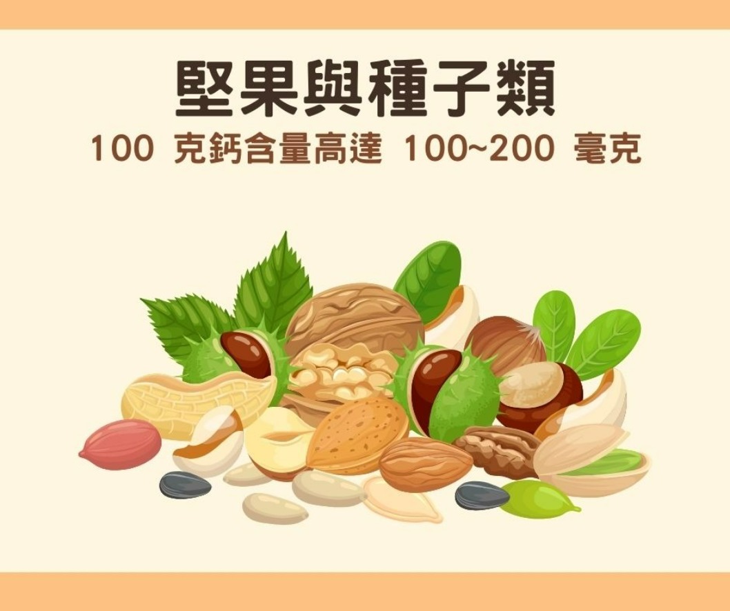 芝麻:黑芝麻鈣含量豐富,每 100 克約有975 毫克鈣質,但芝麻難消化,建議磨成粉後再食用比較好。杏仁:每 100 克含鈣約 250 毫克,是補鈣又健康的零食,但熱量較高,建議每天食用一掌心即可(約 10-15 克)。
