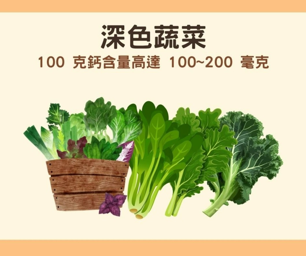紅莧菜、芥藍菜、青江菜:這些蔬菜每 100 克中鈣含量高達 100~200 毫克,且草酸含量較低,鈣的吸收較佳。 菠菜的鈣雖然含量高(81mg /100g),但草酸含量也高,因此吸收率會降低。