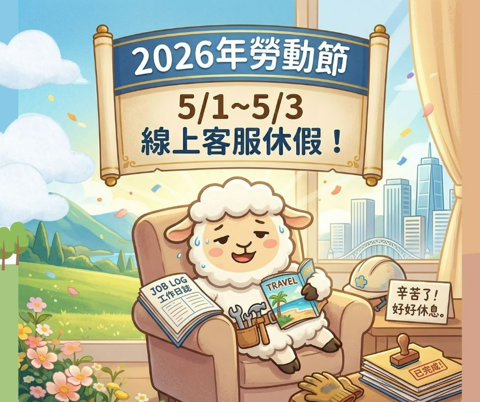 📣 📣2026年5月1~5月3日勞動節連假期間,線上客服暫停服務公告📣 📣